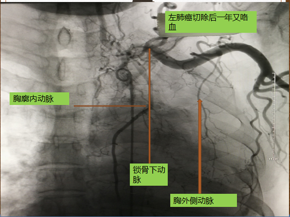 男性68岁,肺癌手术后咳血行介入治疗